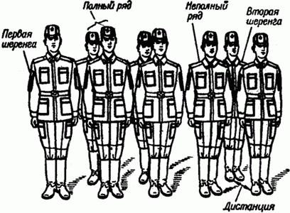 знать свое место в строю, уметь быстро, без суеты занять его; в движении сохранять равнение, установленные интервал и дистанцию; соблюдать требования безопасности; не выходить из строя (машины) без разрешения;